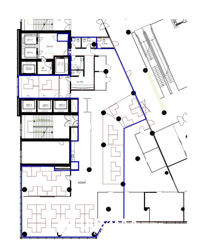 Pinnale sissepääs on läbi büroohoone fuajee, samas on ka tõstuksega sissepääs tänavalt, sest pinna üks osa on garaaž, mida saab kasutada laona vms. Pind sobib bürooks ettevõttele, kes otsib tavapärasest erinevat pinda, samuti on võimalik ruum kohandada treeninguteks vm tegevuseks.