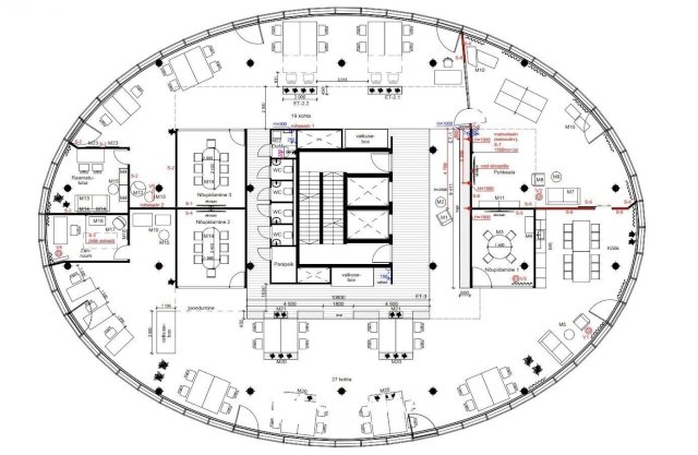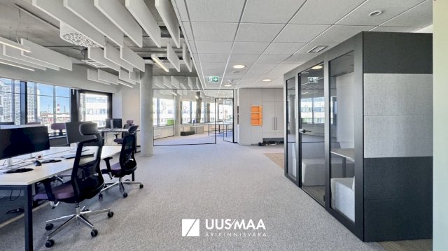 The rooms are equipped with central heating and ventilation, and individually adjustable indoor climate control, with many windows being openable. Currently, the space includes several 1-2 workstation offices, meeting rooms of various sizes, kitchenette, toilets and other necessary rooms. Furniture can also be provided if needed, and the layout of the space can be modified if required. The space can be connected with 261,5m2 space next to if if bigger office is needed.