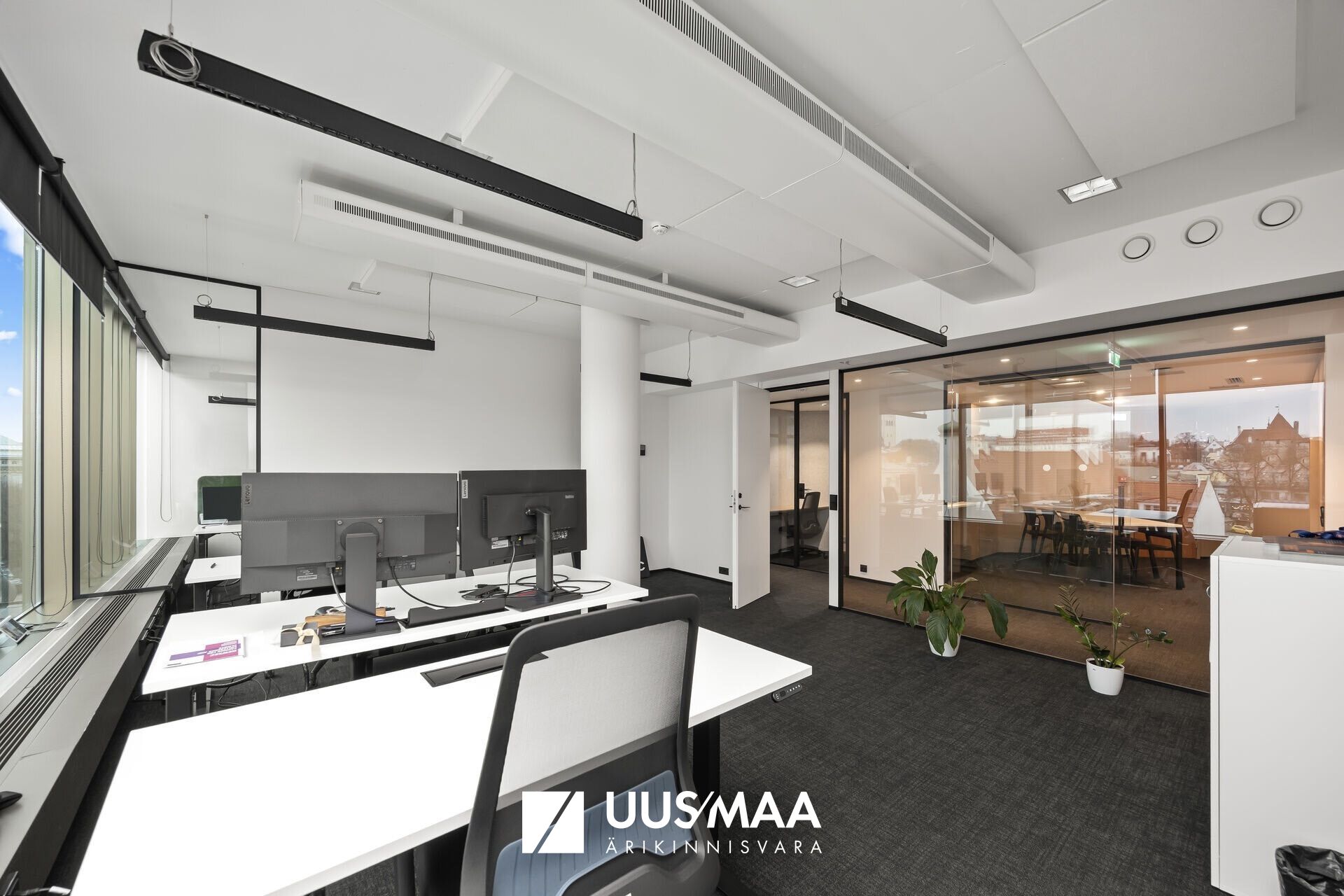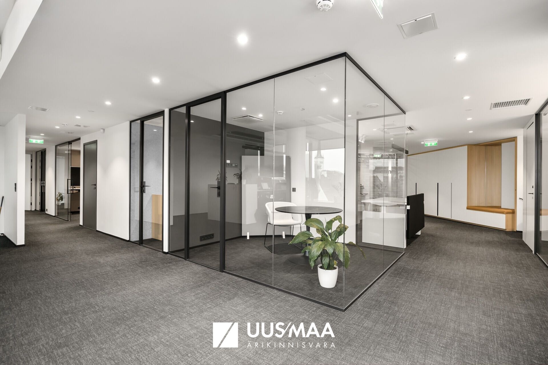 Büroos on avatud planeeringuga valgusküllane tööala, eri suuruses nõupidamisruumid, kööginurk ja tualetid. Vajadusel saab ruumilahenduse muuta. Ruumid on stiilse siseviimistlusega ja hubased. Suurtest akendest avanevad kenad vaated.
