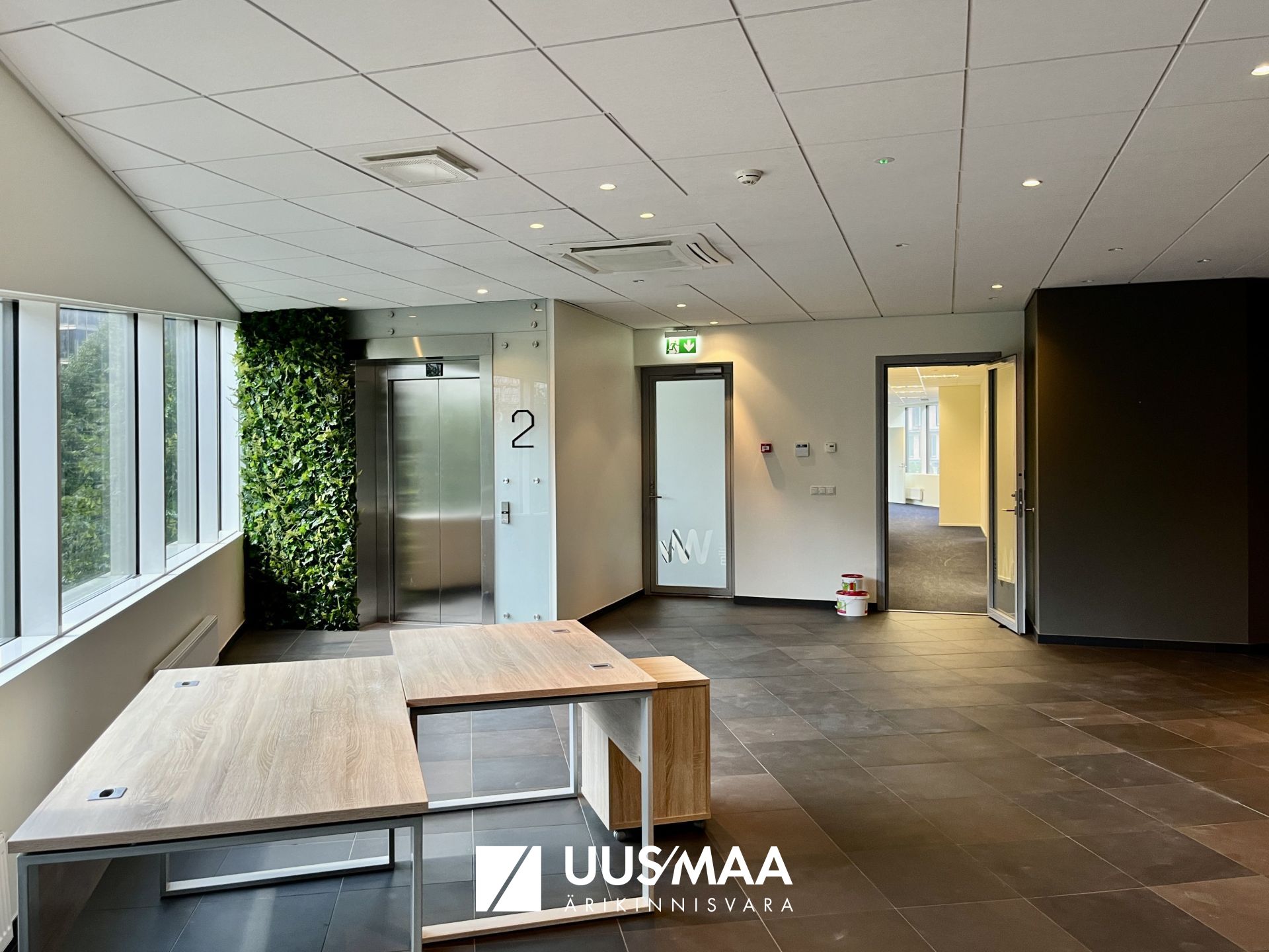 One of Tallinn's most reputable office buildings offers a bright and beautiful office space for rent. Located on the 2nd floor of the building, the space includes five offices, two meeting rooms, a kitchenette, toilet facilities, and a spacious and elegant reception area. Access is direct from the elevator, and entry is granted only with an access card. For convenient guest access, an interactive building guide is provided.