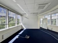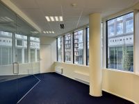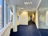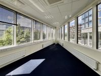 The rooms are well-lit and spacious, with pleasant views from the windows. The building features central heating and a modern ventilation and cooling system, with individually adjustable room climate. The building has been certified as an energy-efficient LEED Gold structure.