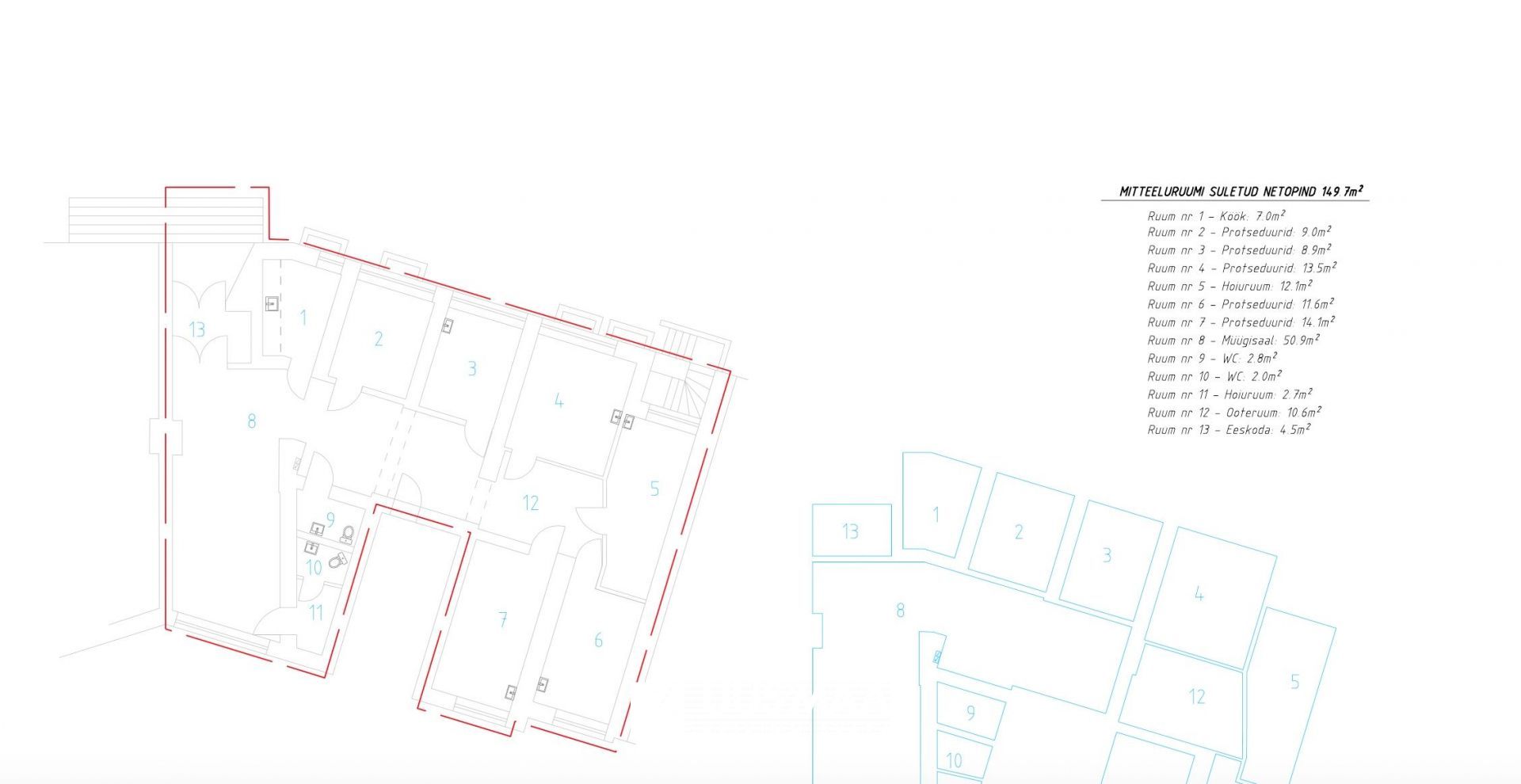 KABINETTIDEGA ÄRIPIND, OLEMAS VESI JA KANALISATSIOON