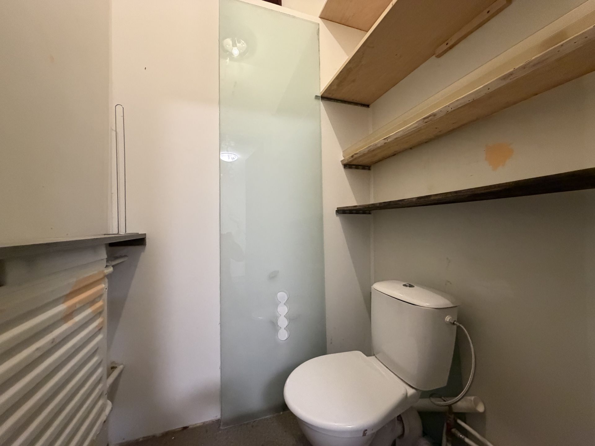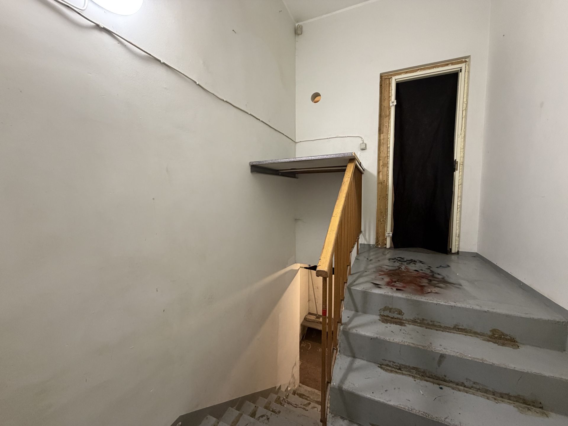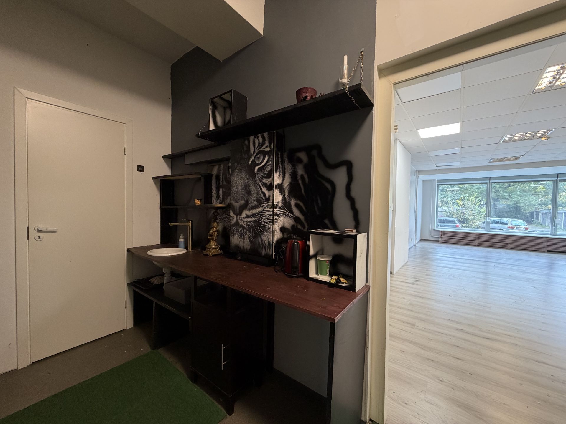 1. korrusel paikneb suurem avatud ruum, mille tagumises osas on väiksem kontoriruum. Ruumi tagumisest otsast pääseb väiksemasse esikusse, millest ligipääs kinnisele rõdule ning 0-korrusele. Esikusse on rajatud WC.