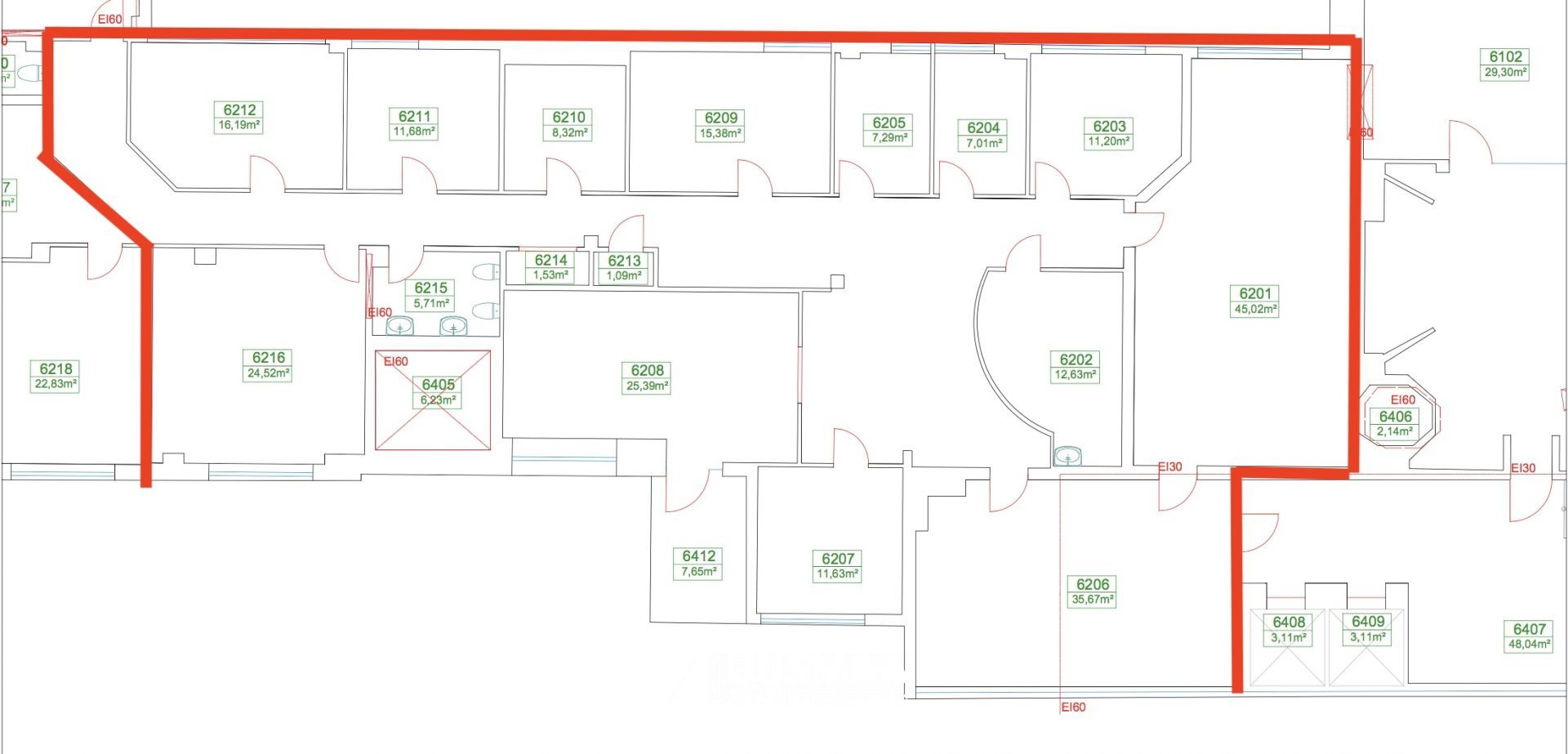 Pind koosneb eri suuruses kabinettidest ja nõupidamisruumidest. Tänu klaasvaheseintele on pind avar ja valgusküllane. Olemas on ka avar vastuvõtuala, garderoob, kööginurk ja tualett ning dušš. Lisavääruseks on rõdu vaatega sadama poole, aknaid on võimalik avada.