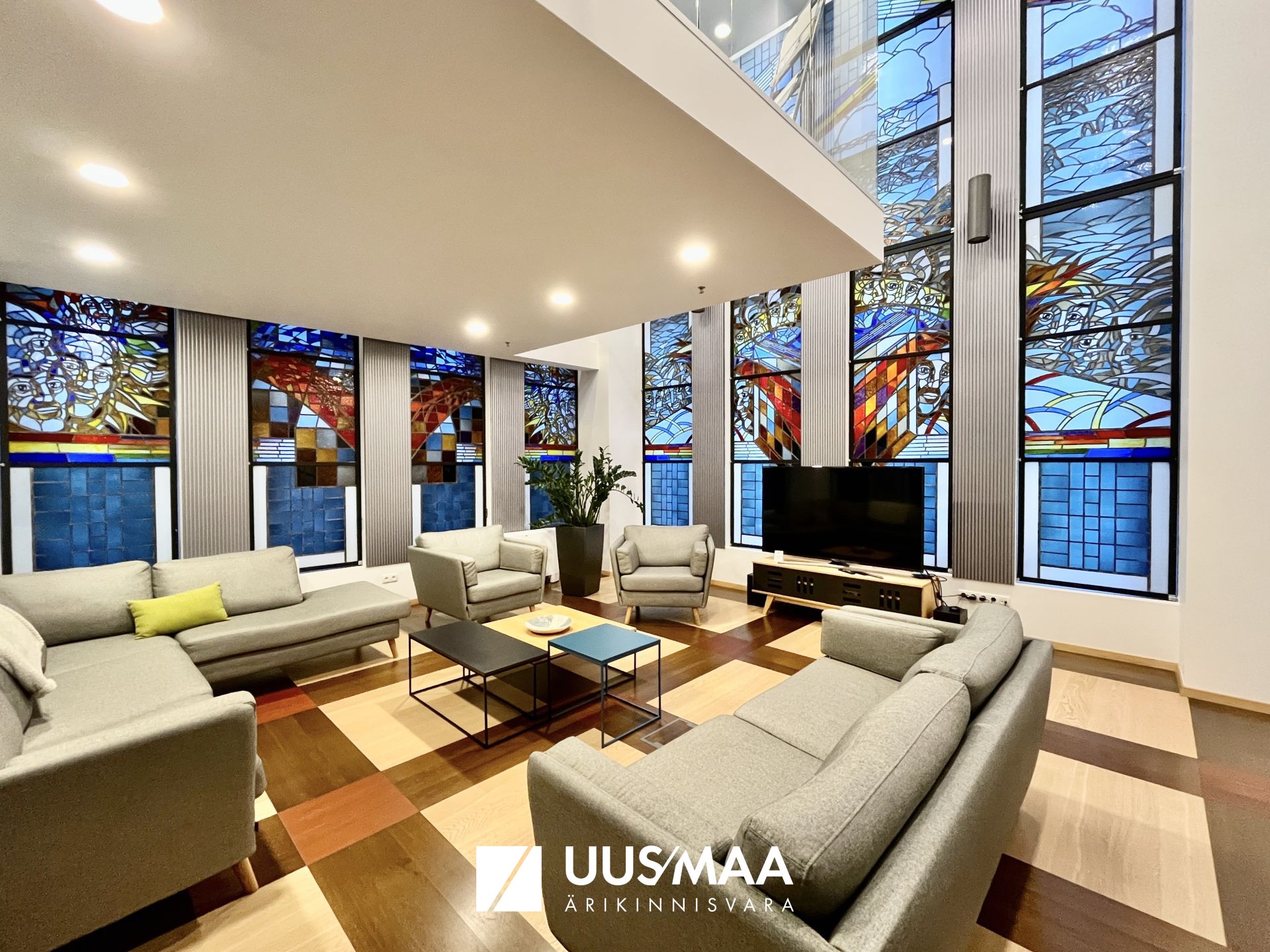 Pinna koosseisus on kabinetid, nõupidamisruumid, kööginurk, esinduslik vastuvõtuala ja tualettruumid. Kirss tordil on hoone nn torniosas paiknev vitraažidega kaunistatud akendega avar lounge ja antresoolkorrusel paiknev stiilne nõupidamisruum. Kui vajad väiksemat pinda, on võimalik büroo kaheks jagada.