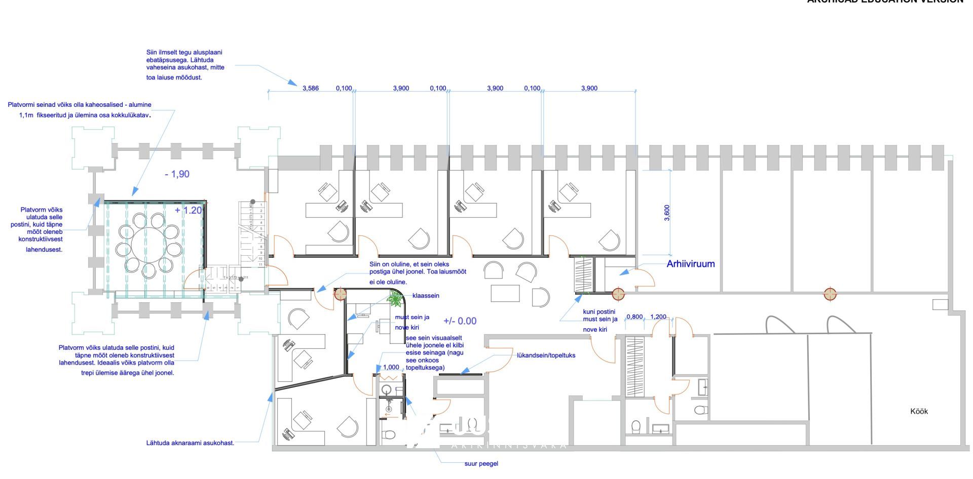 Üür 15.9 eur/m2. Lisanduvad kõrvalkulud ja käibemaks.